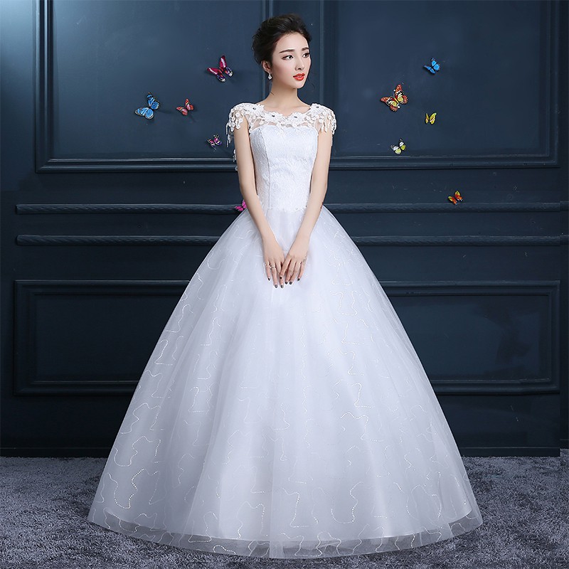 Wedding Dresses 2019 New Bride Contracted Neat A Word Shoulder Sweet Princess Korean Female Winter Round Collar Shopee Malaysia